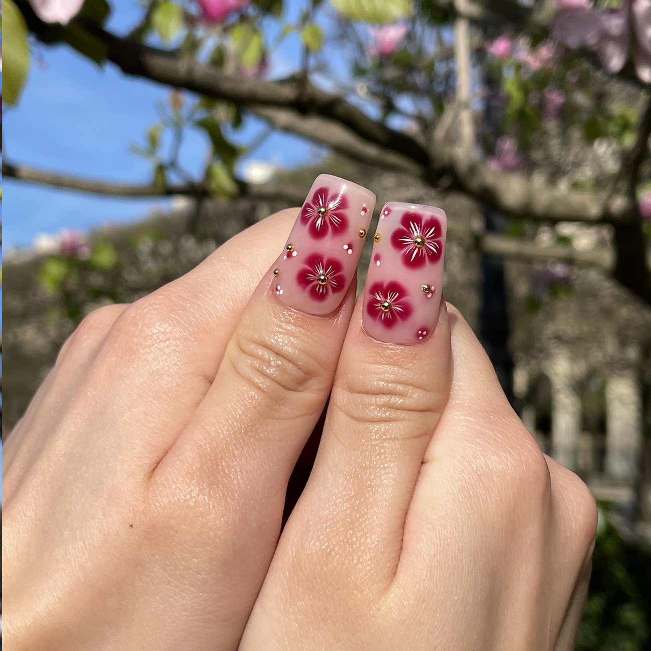 Soft, romantic, and effortlessly elegant—Berry Bloom is the perfect blend of rich berry tones and delicate floral details. This set features a dreamy mix of hues and soft blush accents, creating a timeless, feminine look. Each nail is designed to bring a touch of floral charm to your fingertips. Let your nails bloom with beauty—because every season is a reason to flourish! ⋆˚❁˖°
