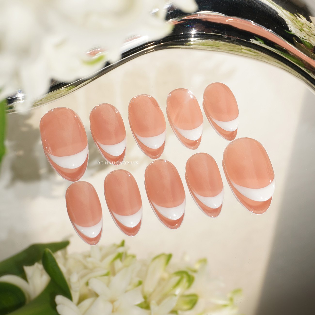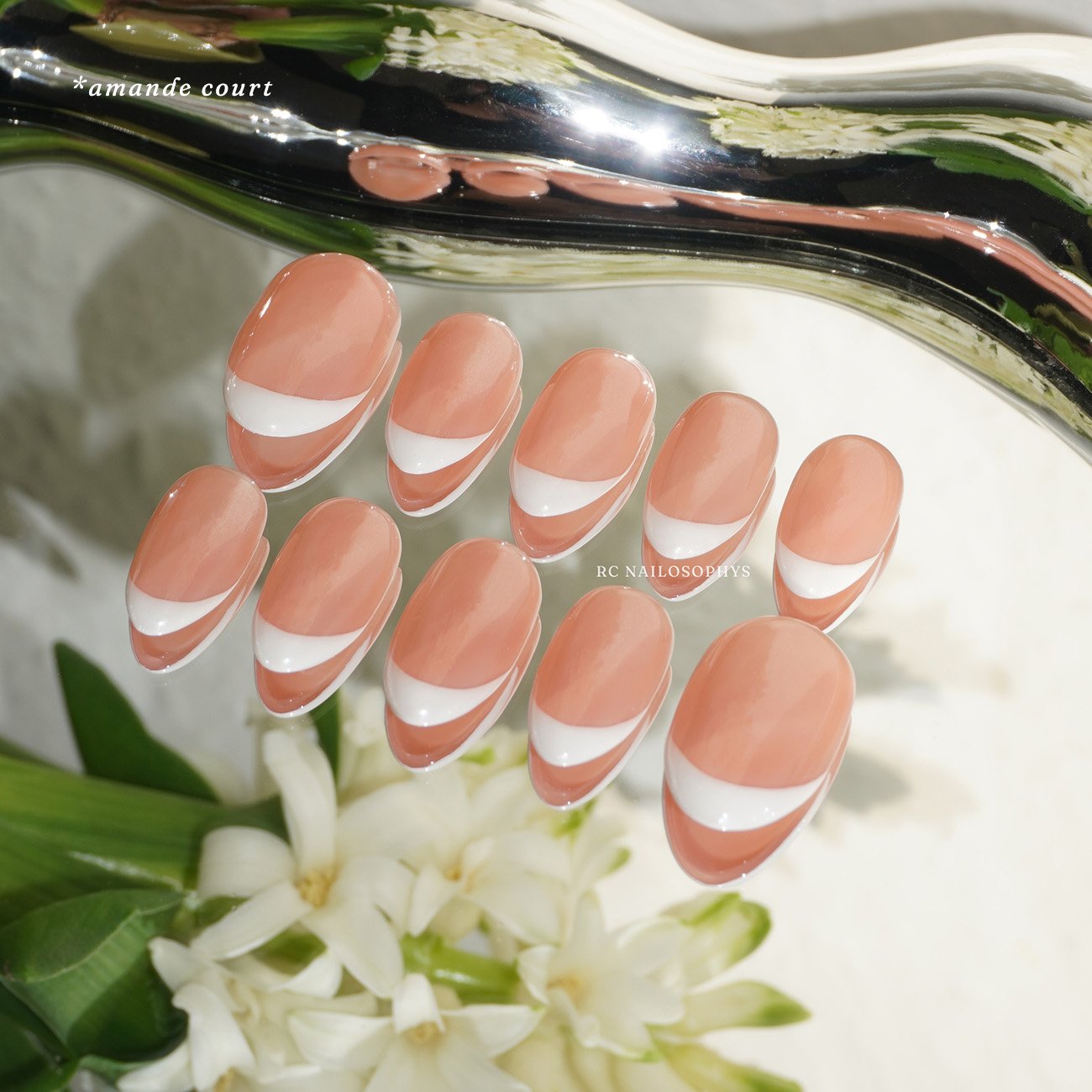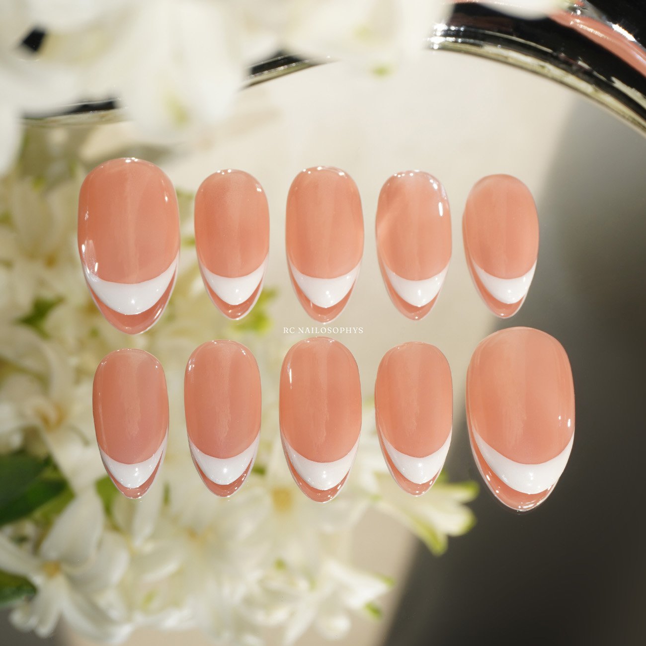Une touche moderne inspirée du style français classique. Ces micro-pointes vernies se fondent dans une base nude pêche transparente, rehaussée d’un voile délicat de chrome transparent qui enveloppe les ongles d’un éclat doux et lumineux. Délicates, naturelles et volontairement discrètes, elles estompent la frontière entre classicisme et modernité, pour un résultat parfait pour les mariages, l’élégance au quotidien et toutes les occasions intermédiaires. Intemporelles, raffinées et discrètement captivantes. ˙⋆✮