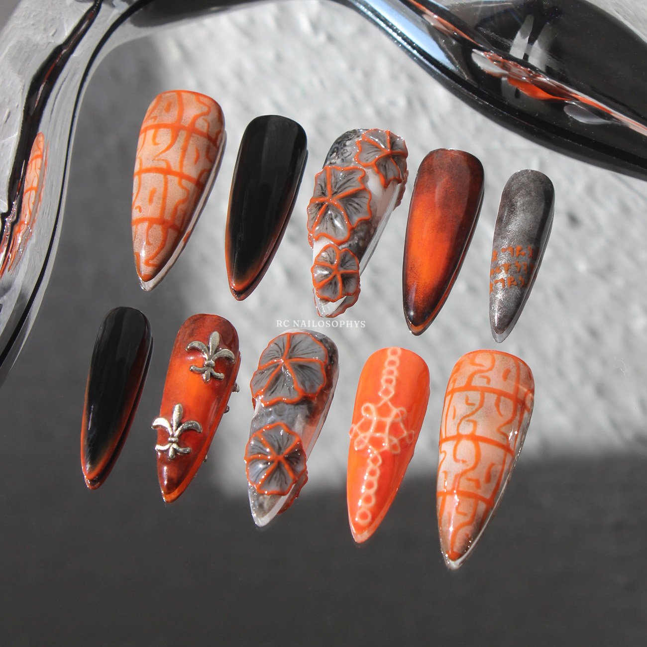 Inspired by « ADOLA: A Love Letter to My Mother », Jaalala embodies resilience and elegance in bold strokes of orange, black, and white. Each nail is a story, woven with detail, strength, and memory, transforming personal history into wearable art. ♥︎